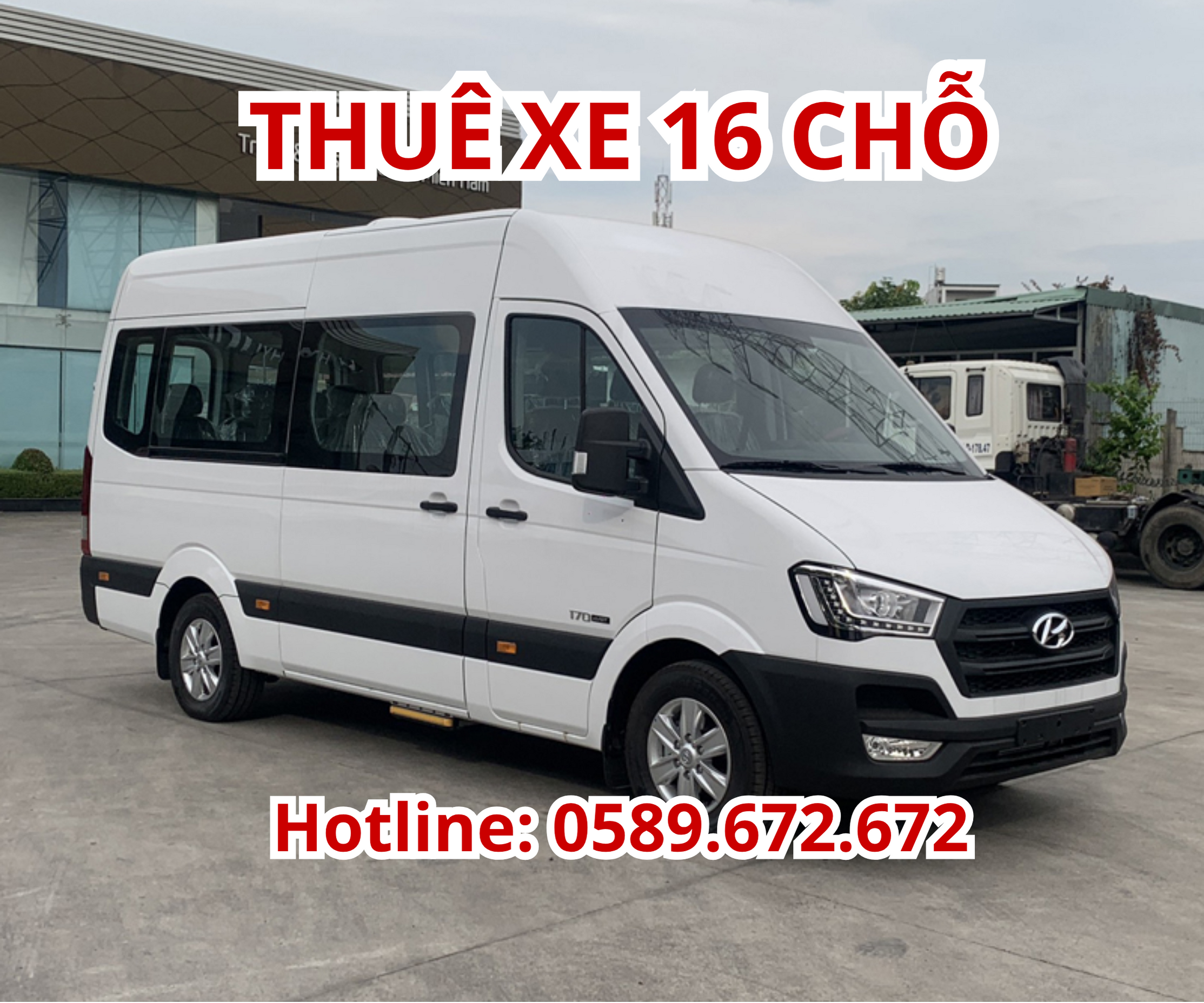 • Dòng xe phổ biến: Ford Transit, Hyundai Solati. Đây là những dòng xe được thiết kế chuyên dụng cho việc vận chuyển hành khách, với ghế ngồi được bố trí hợp lý, lối đi rộng rãi và hệ thống điều hòa phủ khắp xe. Nhiều đơn vị còn cung cấp dòng xe Limousine 16 chỗ được cải tiến với nội thất sang trọng, đẳng cấp.